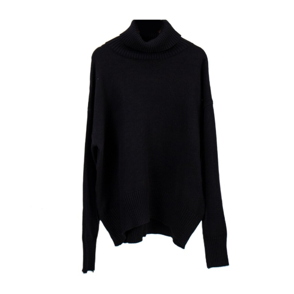 (Black XL) Oversized Turtleneck Sweater Women Batwing Sleeve Loose Black XL
