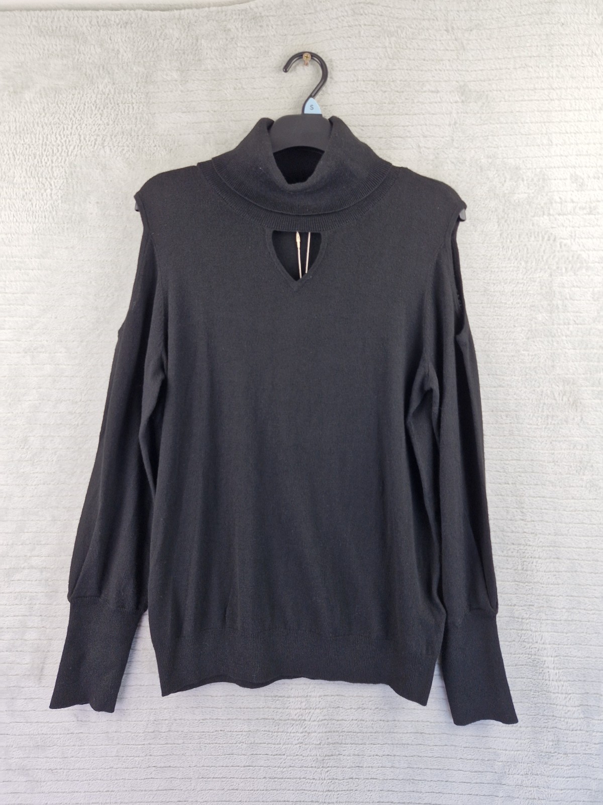Monsoon Black Cold-Shoulder Turtleneck Sweater Front Keyhole Detail Size M BNWT