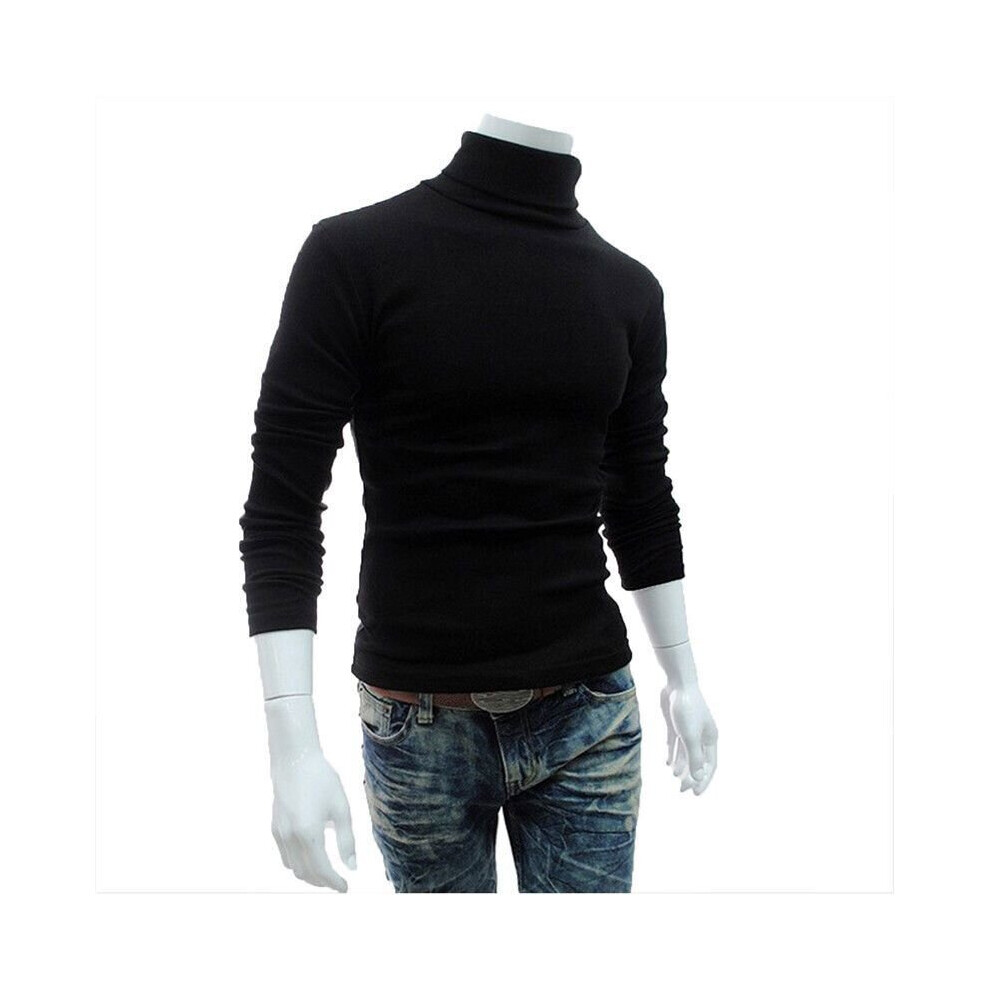 Men's Black Fitted Turtleneck Sweater Long Sleeve Lightweight Knit Pullover Casual Formal Jumper Top Size M