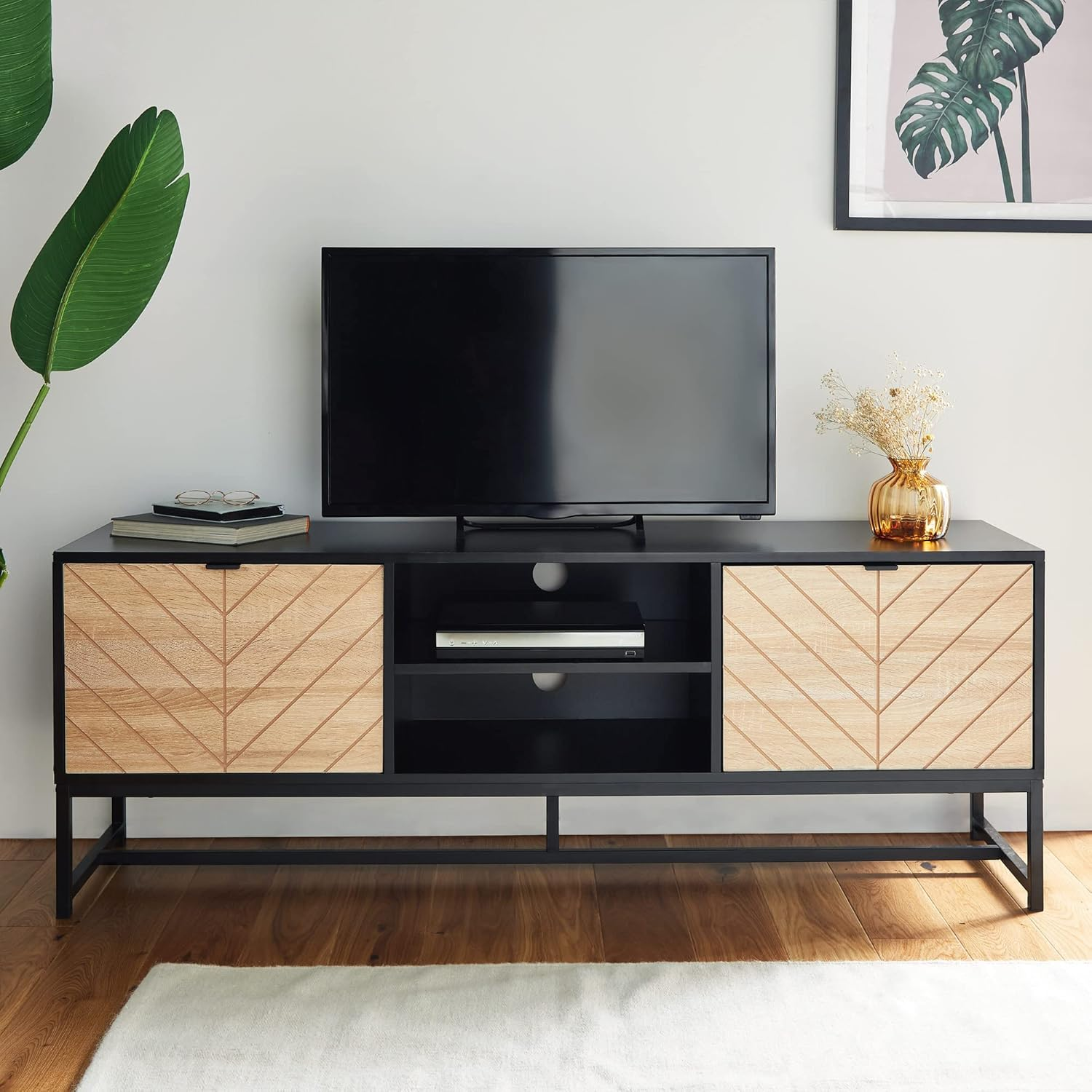 TV Stand Cabinet Chevron Storage Unit 65 Inch Television Industrial Black Wood