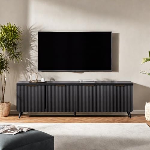 Natulvd 180 cm Wide TV Cabinet Stand Unit for 65 70 75 Inch TVs Flat Screen with Open Shelves, Entertainment Center for Living Room, Bedroom (Black)