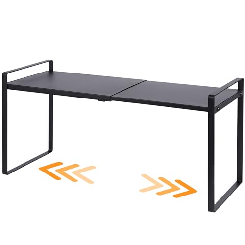 LJHFUQHUHU Expandable Cabinet Shelf Organizer Riser for Kitchen Pantry Cupboard Under Sink Countertop (Black, 8.2’’D * 12.2-21.6’’W * 7.0’’H)