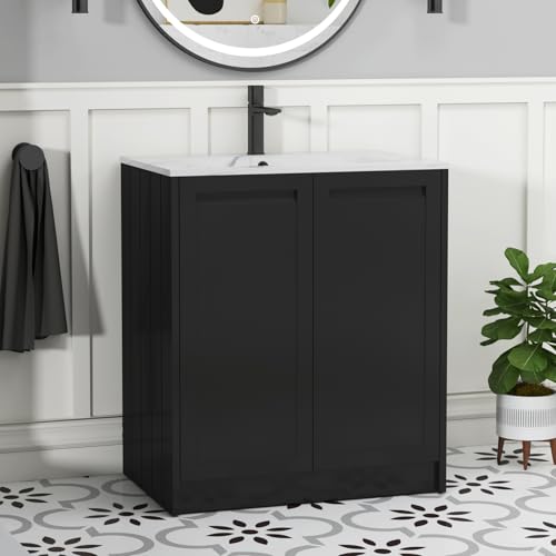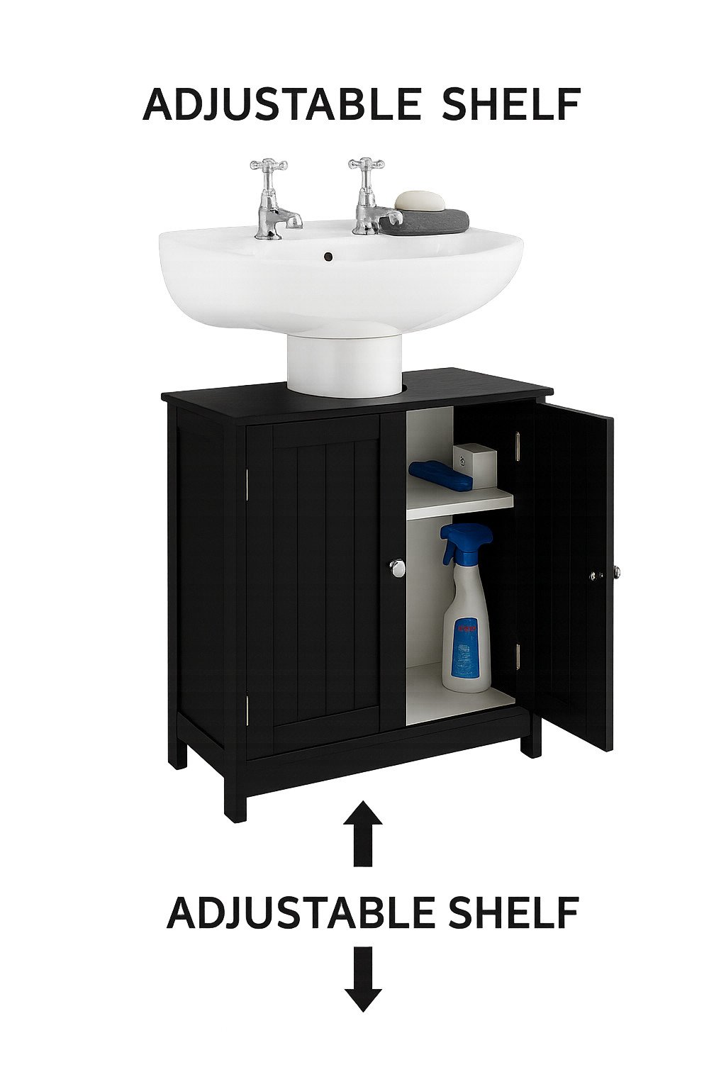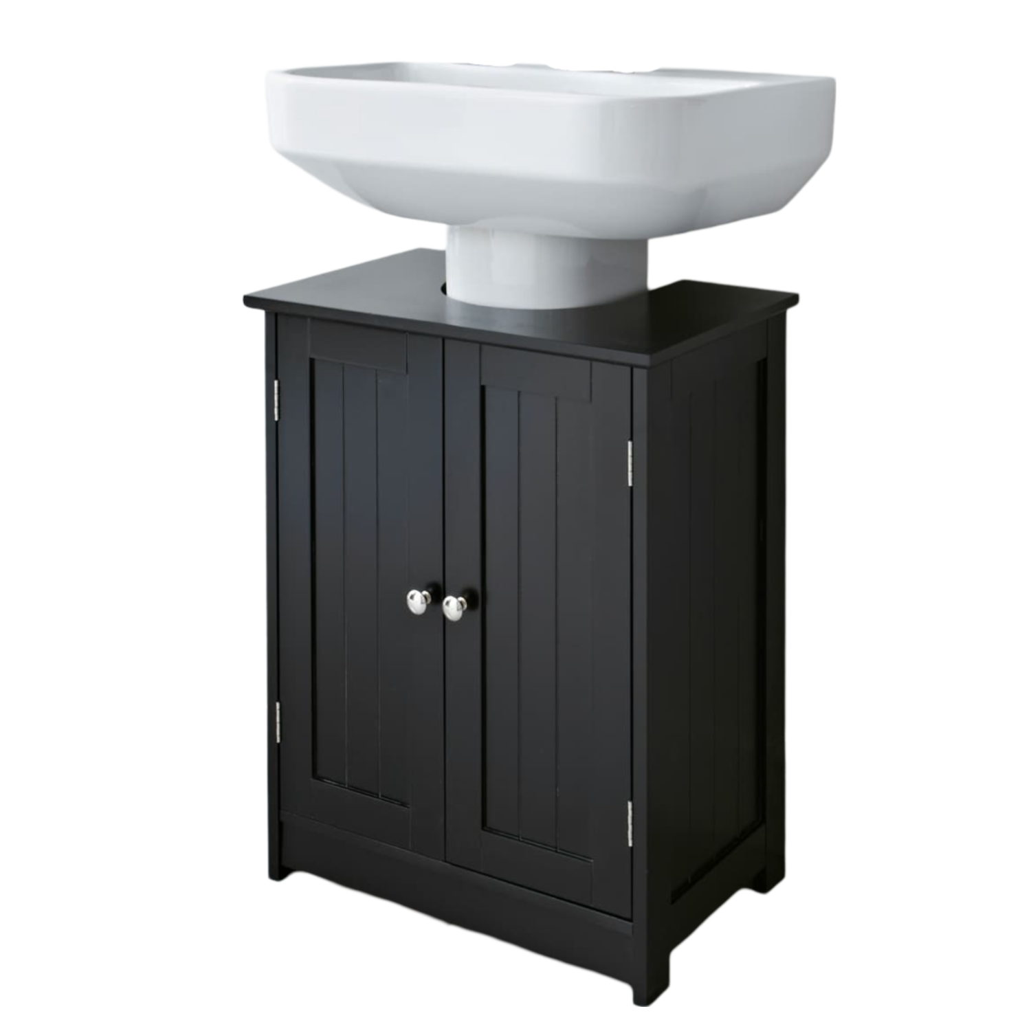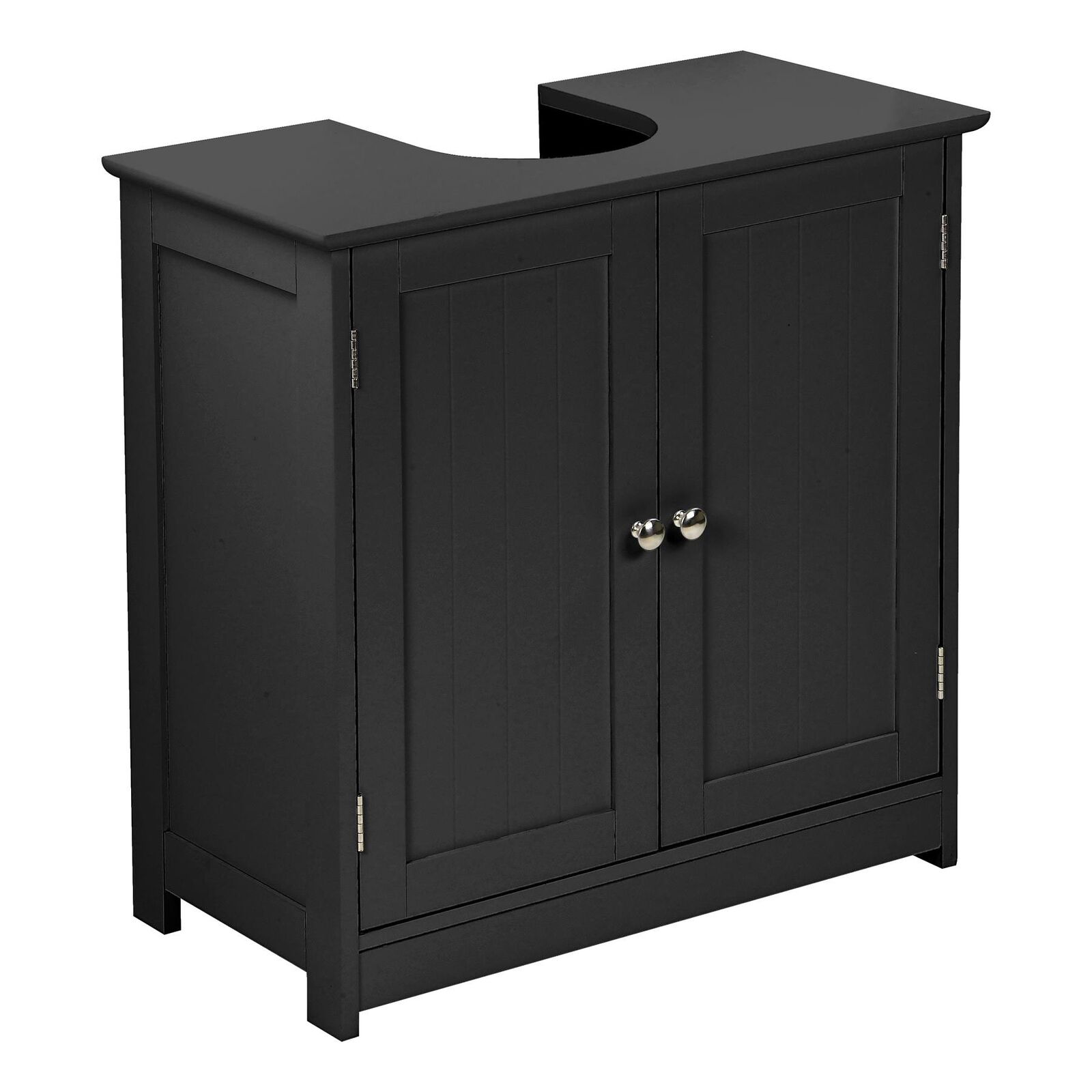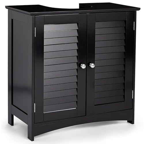 VonHaus Under Sink Bathroom Cabinet – Black Under Sink Storage for Bathroom - Freestanding Under Basin Cabinet with 2 Internal Shelves & Shutter Style Doors – Under Sink Cupboard – Shrewsbury
