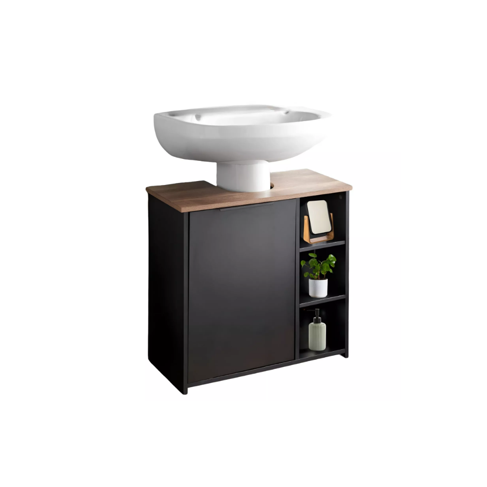 Dylex Bathroom Under-Sink Cabinet, 3 Shelves, 1 Door, 65cm x 30cm x 60cm, Black
