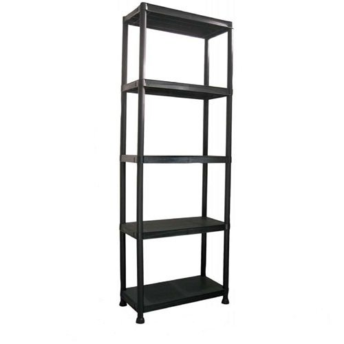 5 Tier 60cm Wide Heavy Duty Black Plastic Shelving Unit Storage Organiser Garage Home Pantry Racking Shelf Shelves Workbench Workman Bays Racking Tools Paint Stationary Parts (1)