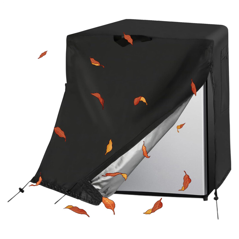 Outdoor Fridge Cover,, Upright Mini Freezer Cover, 210D Oxford Cloth, Versatile Size, Secure and Stable Fit (Black, L)