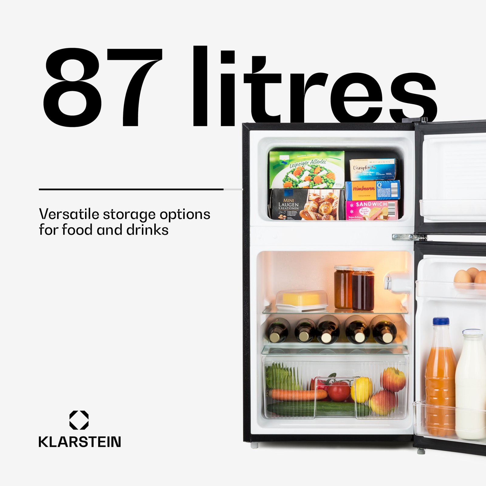 Upright Freezer Fridge Freestanding 87L Food Chiller Kitchen Vegetable Box Black
