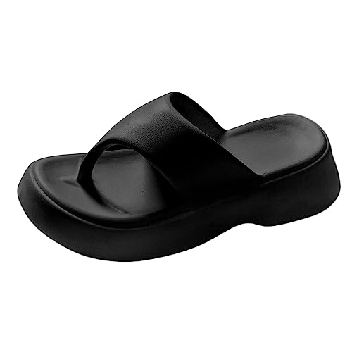 IUYTYSER Womens Casual Flip Flops Ladies High Heel Thick Bottom Slippers Female Summer Beach Non Love Students Fashion (Black, 38) Women Walking Sandals For Uk Black Size 6 Sparkly Orthopedic