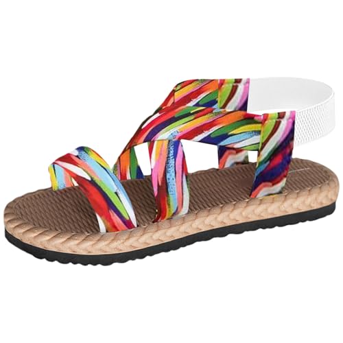 IUYTYSER Sandals With Arch Support For Women Women'S Open Toe Elastic Ankle Strap Flat Summer Beach Sandal Comfy Strappy Shoes Espadrille (Hot Pink, 41) Black Walking Womens Comfortable+Sandals