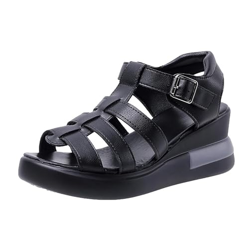 IUYTYSER Womens Orthopedic Sandal Thick Heeled Fish Mouth Buckled Espadrilles Insoles For Women (Black, 6) Sandals Walking Women'S Wedge Comfortable With Back Strap Summer Sandles Ladies Size 8