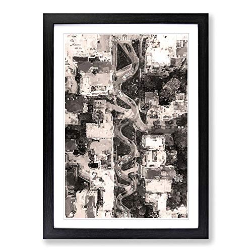 Big Box Art Top of Lombard Street in San Francisco in Abstract Framed Wall Art Picture Print Ready to Hang, Black A2 (62 x 45 cm)