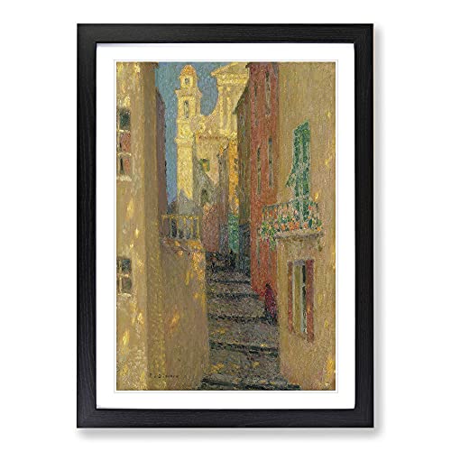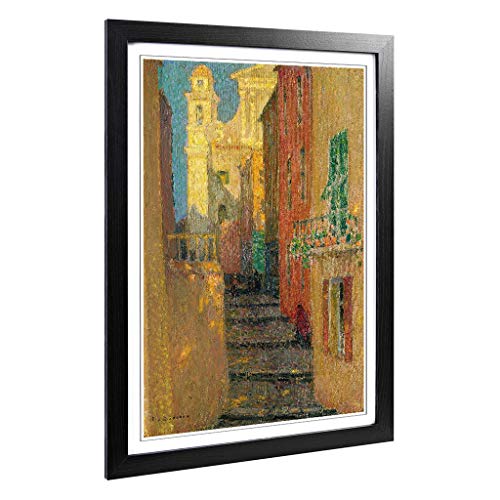 Big Box Art Framed Print of Henri Le Sidaner Street Steps Design | Wall Art Picture | Home Decor for Kitchen, Living, Dining Room, Bedroom, Hallway, Office, Black, A2 / 24.5x18 Inch / 62x45cm