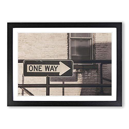 Big Box Art Framed Print of One Way Street Sign Design | Wall Art Picture | Home Decor for Kitchen, Living, Dining Room, Lounge, Bedroom, Hallway, Office, Black, A2 / 24.5x18 Inch / 62x45cm