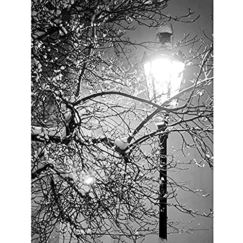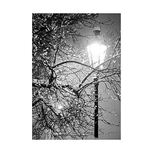 Wee Blue Coo Lonely Street Lamp Winter Night Black White Photo Art Large Art Print Poster Wall Decor 18x24 inch