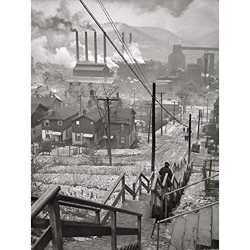 Wee Blue Coo Photograph Black White Stairs Street Winter Industry Art Print Poster Wall Decor 12X16 Inch