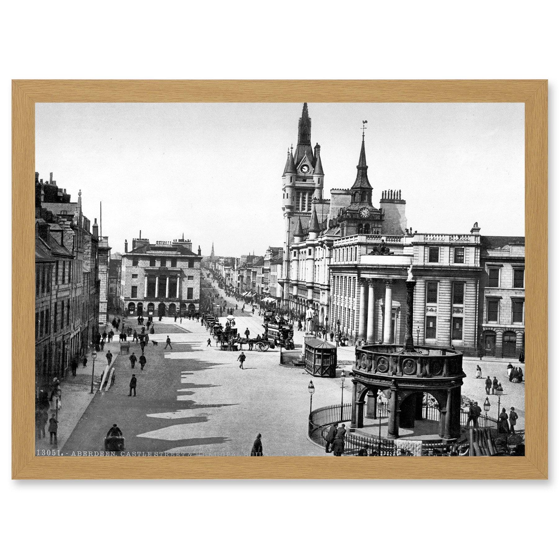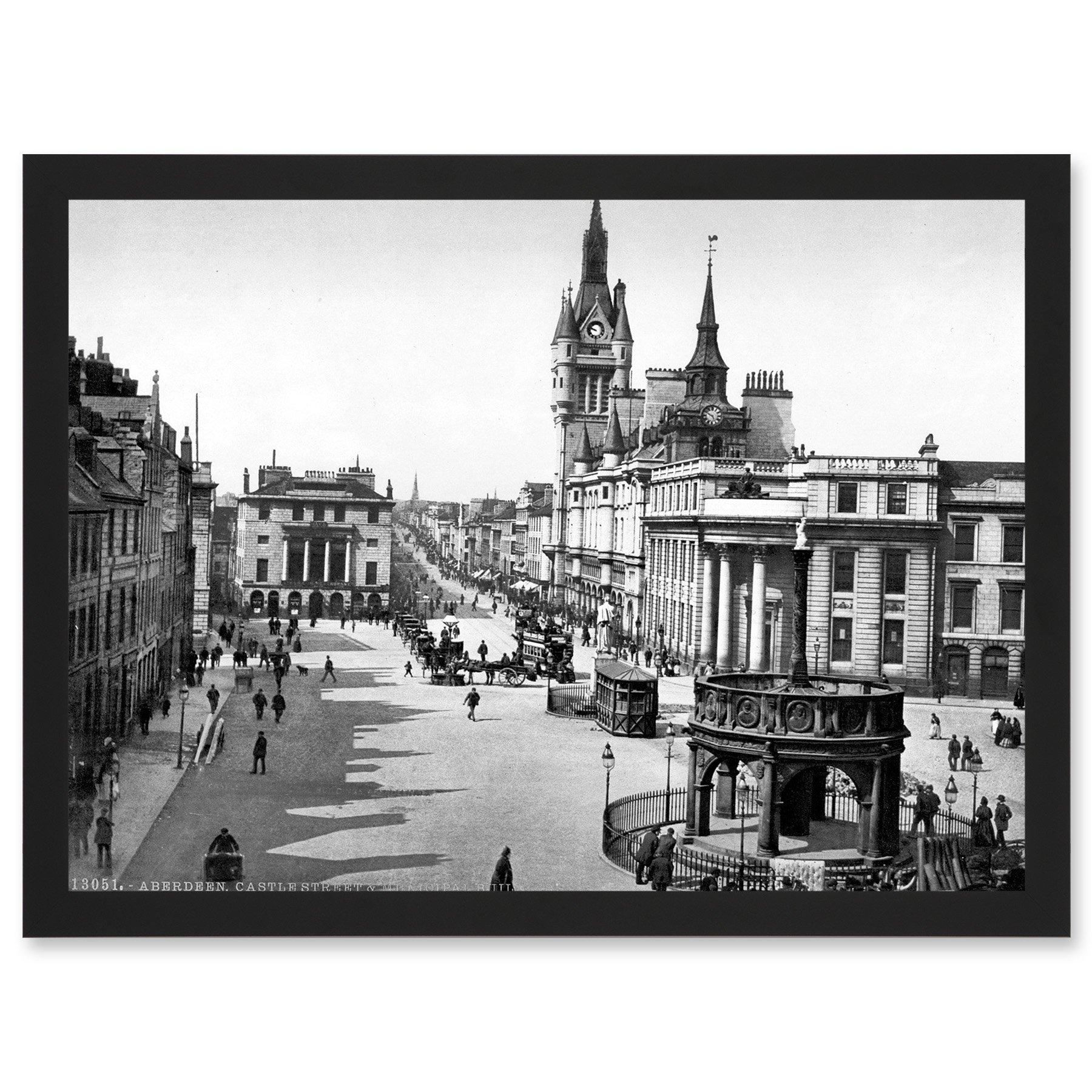 Aberdeen Castle Street Scotland Vintage Photo Black White Artwork Framed Wall Art Print A4