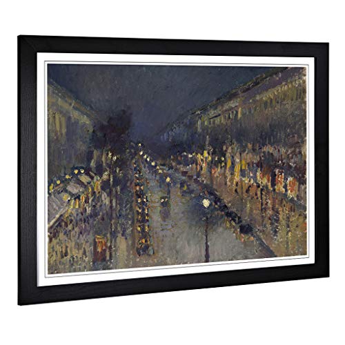 Big Box Art Framed Print of Camille Pissaro Street at Night Design | Wall Art Picture | Home Decor for Kitchen, Living Room, Bedroom, Hallway, Black, A2 / 24.5x18 Inch / 62x45cm