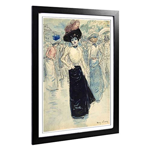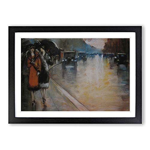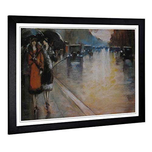 Big Box Art Framed Print of Henry Somm Woman on Paris Street Design | Wall Art Picture | Home Decor for Kitchen, Living Room, Bedroom, Hallway, Black, A2 / 24.5x18 Inch / 62x45cm