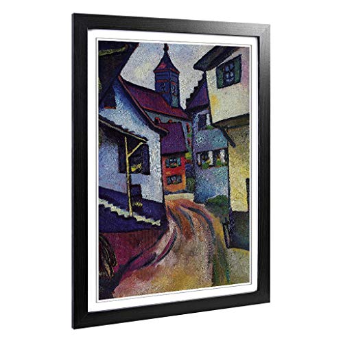 Big Box Art Framed Print of August Macke Street with Church Design | Wall Art Picture | Home Decor for Kitchen, Living Room, Bedroom, Hallway, Black, A2 / 24.5x18 Inch / 62x45cm