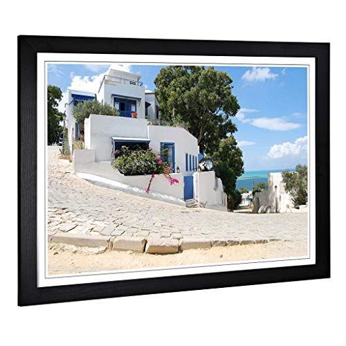 Big Box Art Framed Print of Architecture Tunisia Street Design | Wall Art Picture | Home Decor for Kitchen, Living, Dining Room, Bedroom, Hallway, Office, Black, A2 / 24.5x18 Inch / 62x45cm