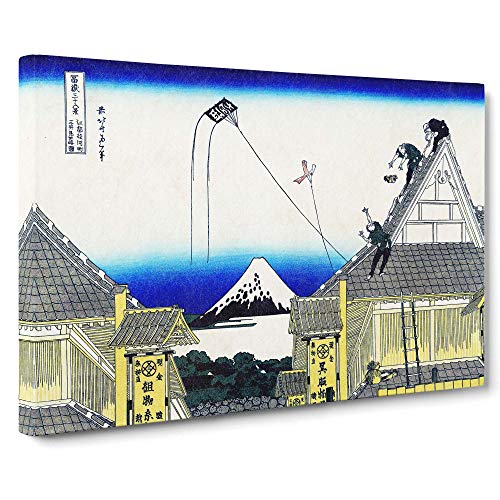 Big Box Art Mitsui Shop on Suruga Street in Edo by Katsushika Hokusai Painting Canvas Wall Art Framed Picture Print, 30 x 20 Inch (76 x 50 cm), White, Grey, Black, Blue, Yellow