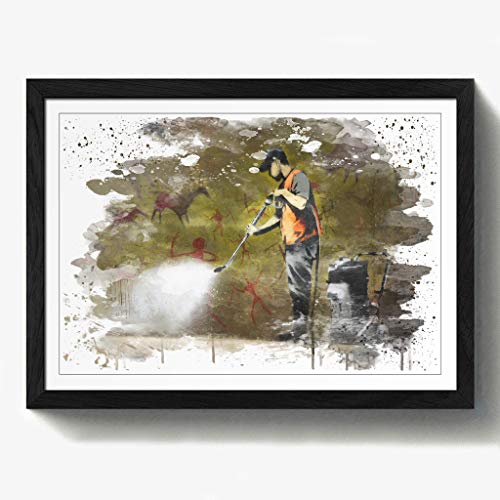 Arty Pie Framed Print Black A2 (24.5x18 Inch) Banksy Street Cleanup Graffiti Wall Art V2, Wood, Multi-Colour, 60 x 42 x 2 cm