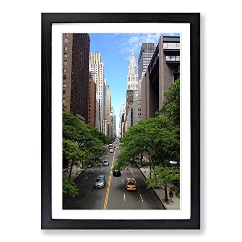 Big Box Art New York City Street Empire State Building Framed Wall Art Picture Print Ready to Hang, Black A2 (62 x 45 cm)