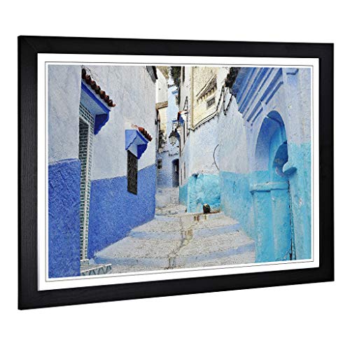 Big Box Art Framed Print of Architecture Morocco Street (5) Design | Wall Art Picture | Home Decor for Kitchen, Living Room, Bedroom, Hallway, Black, A2 / 24.5x18 Inch / 62x45cm