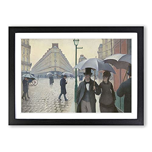 Big Box Art Framed Print of Gustave Caillebotte Paris Street on a Rainy Day Design | Wall Art Picture| Home Decor for Kitchen, Living Room, Bedroom, Hallway, Black, A2 / 24.5x18 Inch / 62x45cm