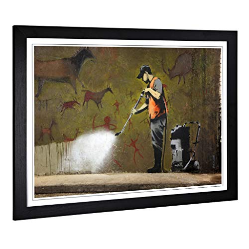 Big Box Art Framed Print of Banksy Street Cleanup Graffiti Design | Wall Art Picture | Home Decor for Kitchen, Living Room, Bedroom, Hallway, Black, A2 / 24.5x18 Inch / 62x45cm