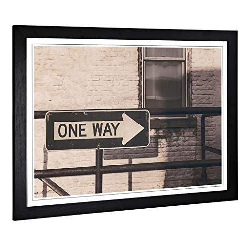 Big Box Art One Way Street Sign Framed Wall Art Picture Print Ready to Hang, Black A2 (62 x 45 cm)