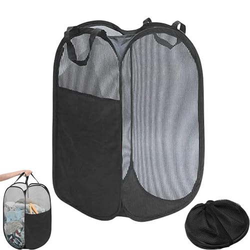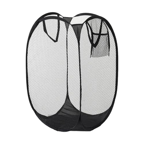 Large Washing Basket Collapsible Mesh Collapsible Washing Basket Pop up Laundry Hamper Basket with Side Pocket Laundry Hampers Mesh Laundry Baskets with Handles for Bathroom College Dorm Black