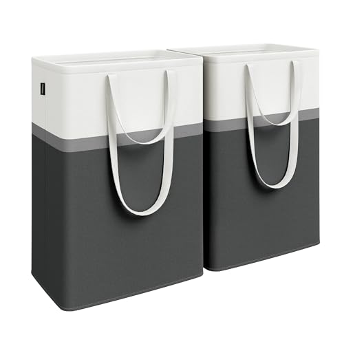 BrilliantJo upgrade Large Laundry Baskets 84L, Collapsible Linen Laundry Hamper Washing Basket with Handles, Laundry bin suitable for Bedrooms Laundry Room, Bathroom, 68x42x32cm, Black+Grey