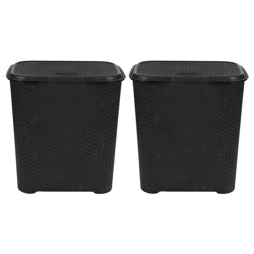 2 x Large Plastic Laundry Basket & Lid 65L Washing Clothes Storage Hamper BLACK