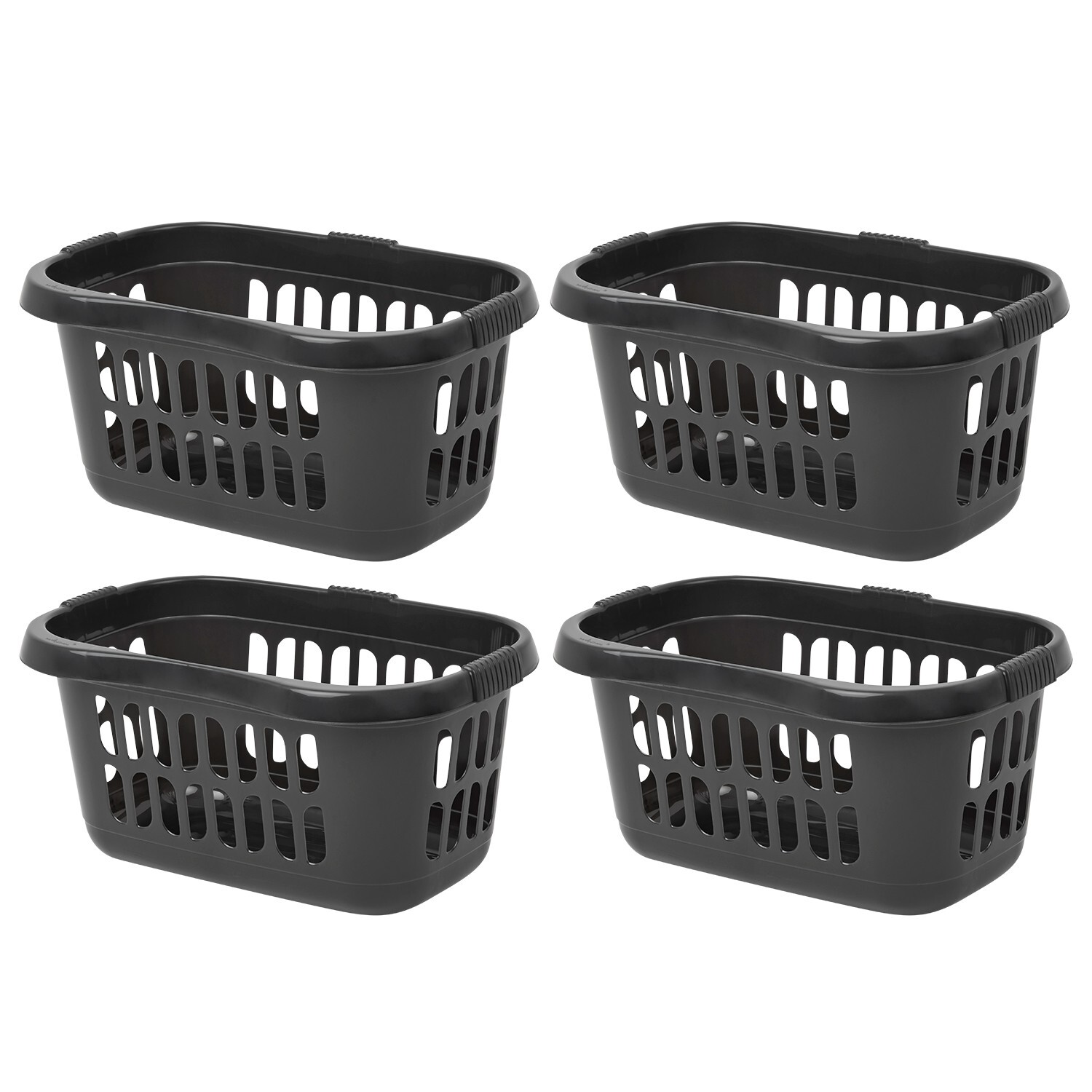 4 x Plastic Laundry Basket Hipster Washing Drying Clothes Linen Storage - Black