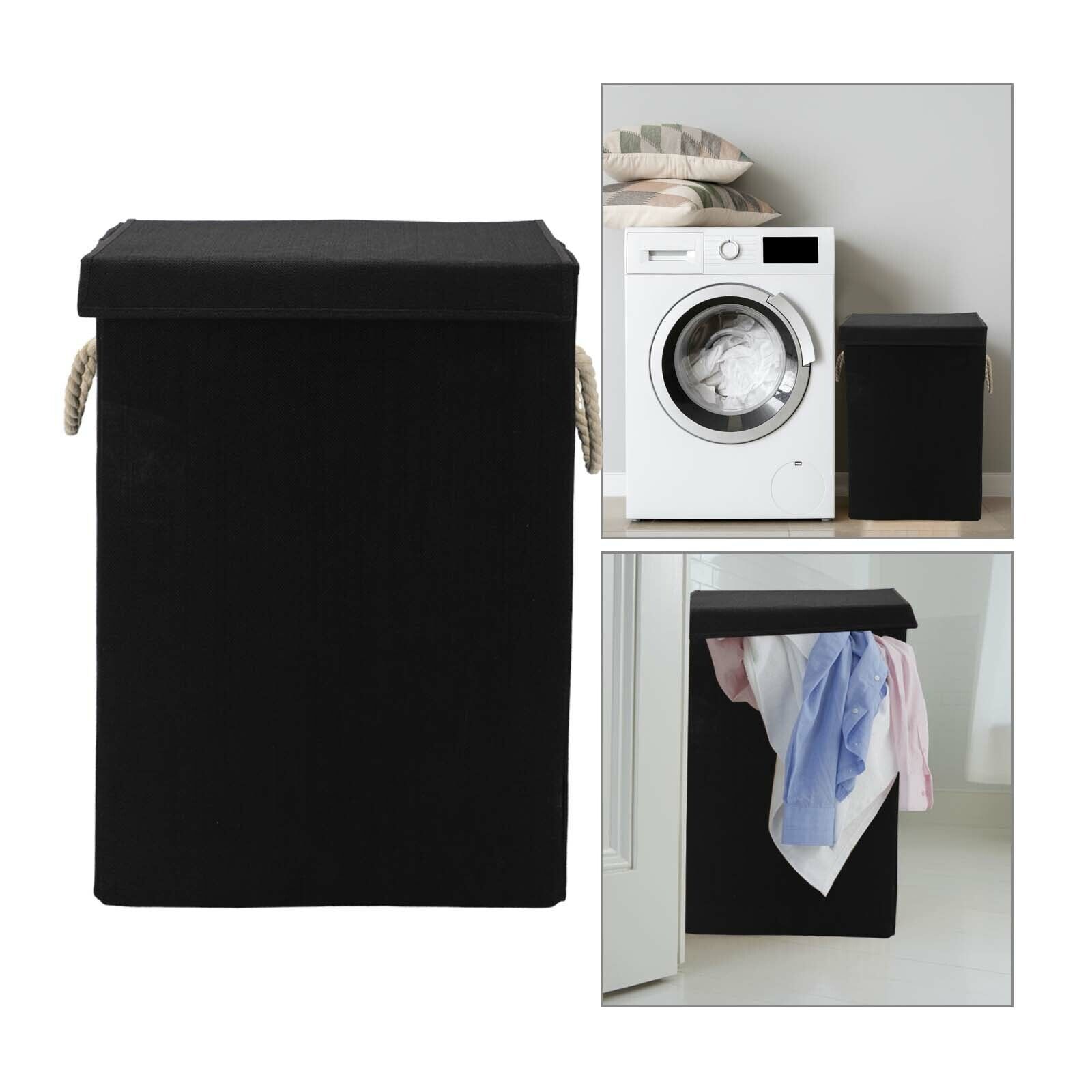 efluky Foldable Washing Basket, 48L Bamboo Laundry 48L, Black