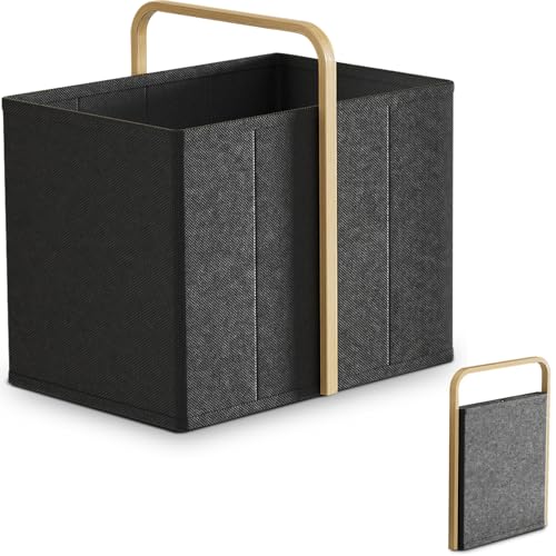 Vireon Collapsible Laundry Washing Baskets with Handle- 65L Large Foldable Bamboo Cloth Fabric Storage Ironing Basket | Space-Saving Folding Design Clothes Laundry Hamper(black)