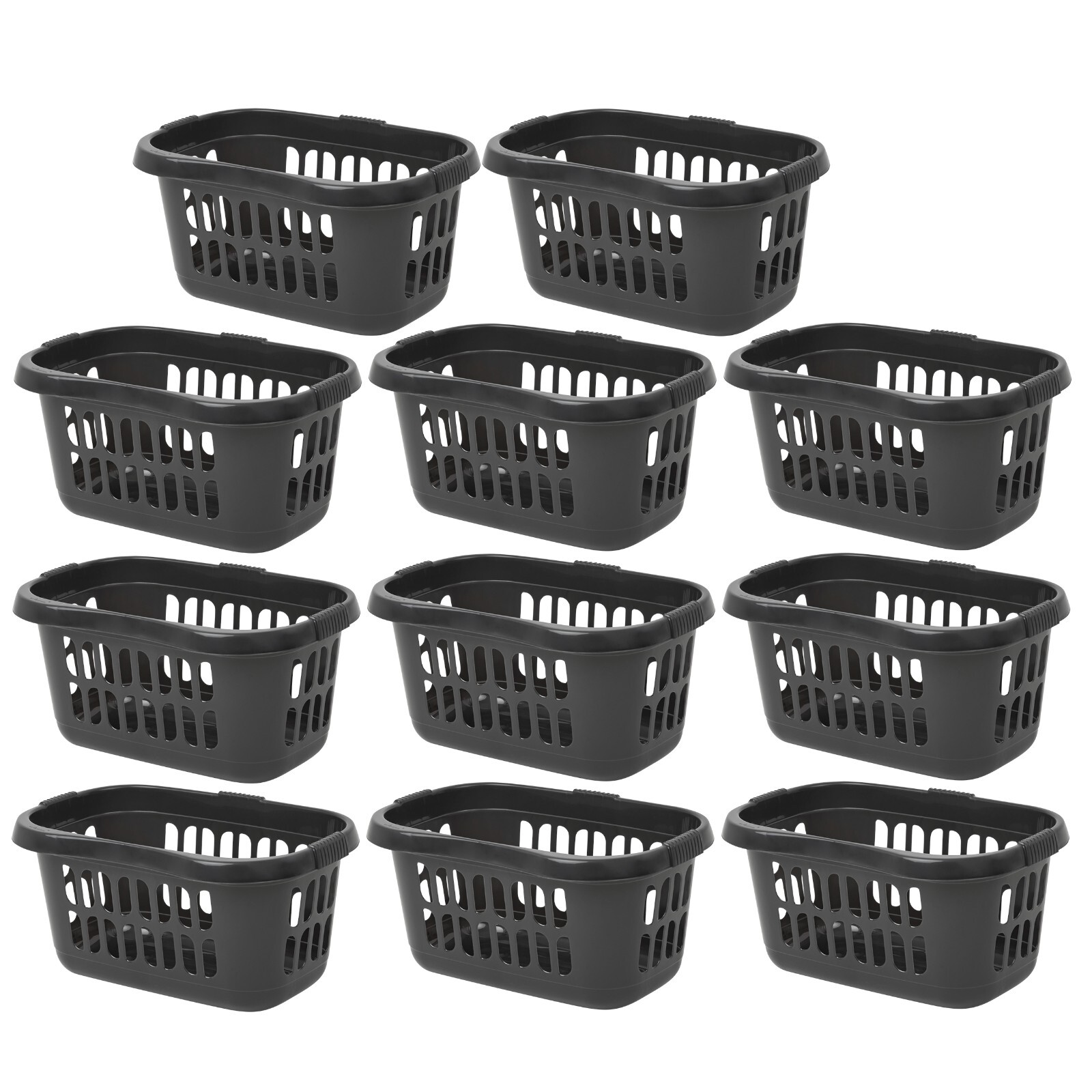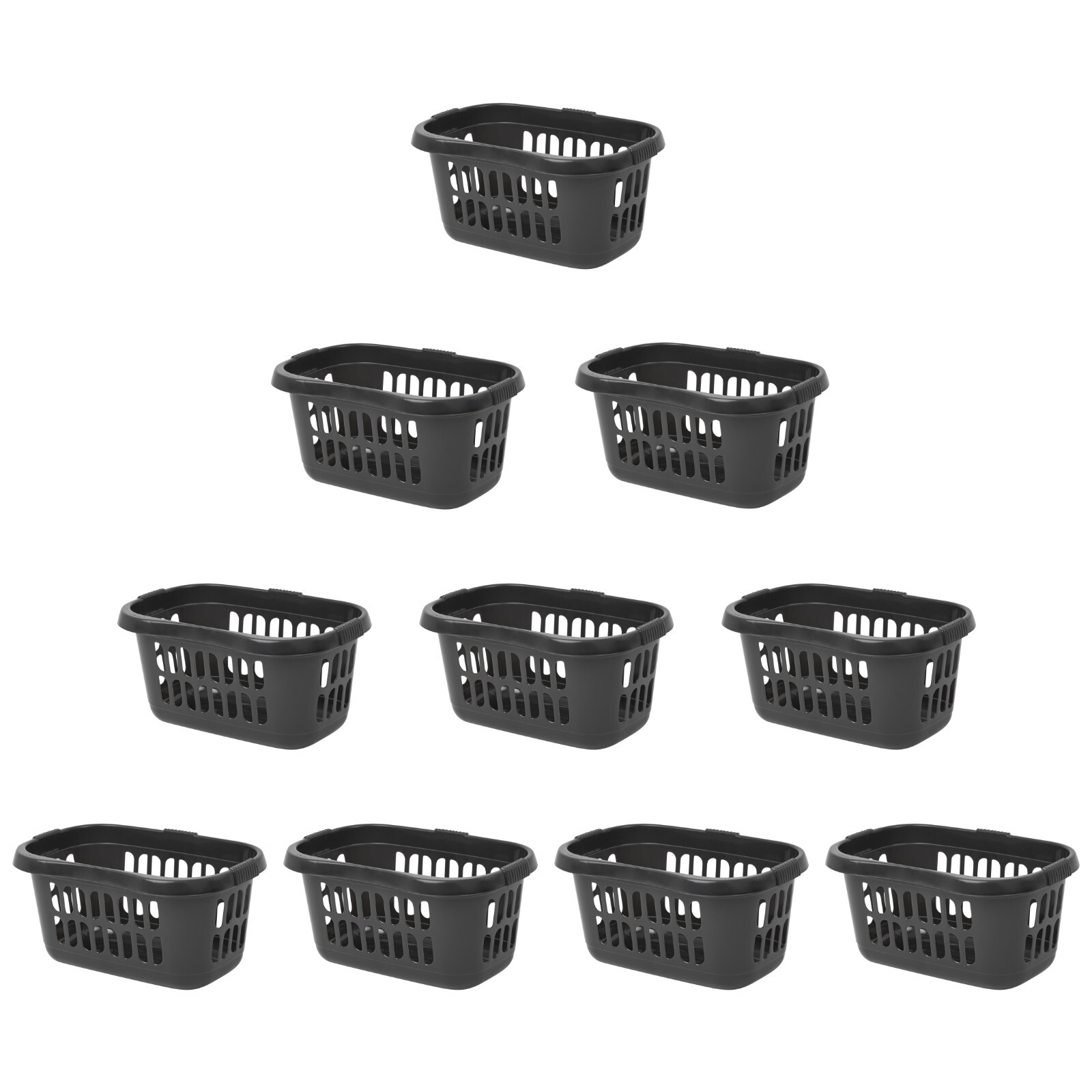 10 x Plastic Laundry Basket Hipster Washing Drying Clothes Linen Storage - Black
