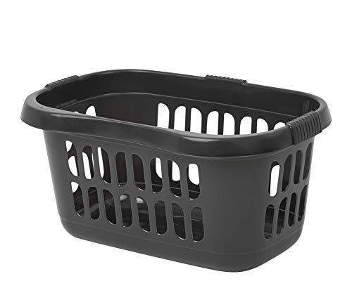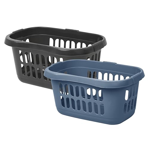 JMS we create smile (Set of 2) Plastic Rectangular Hipster Laundry Baskets for Washing Clothes Linen Storage Basket Tidy Organiser for Bathroom Laundry Room, Kids Nursery (Midnight Black/Grey)