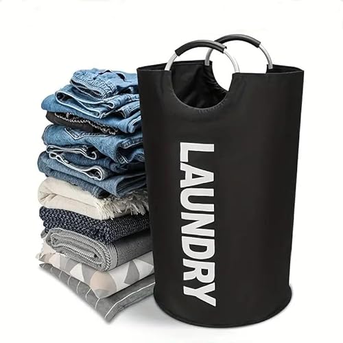 DOKEHOM 50L Collapsible Washing Laundry Basket Bag for Bedroom, Fabric (Black)