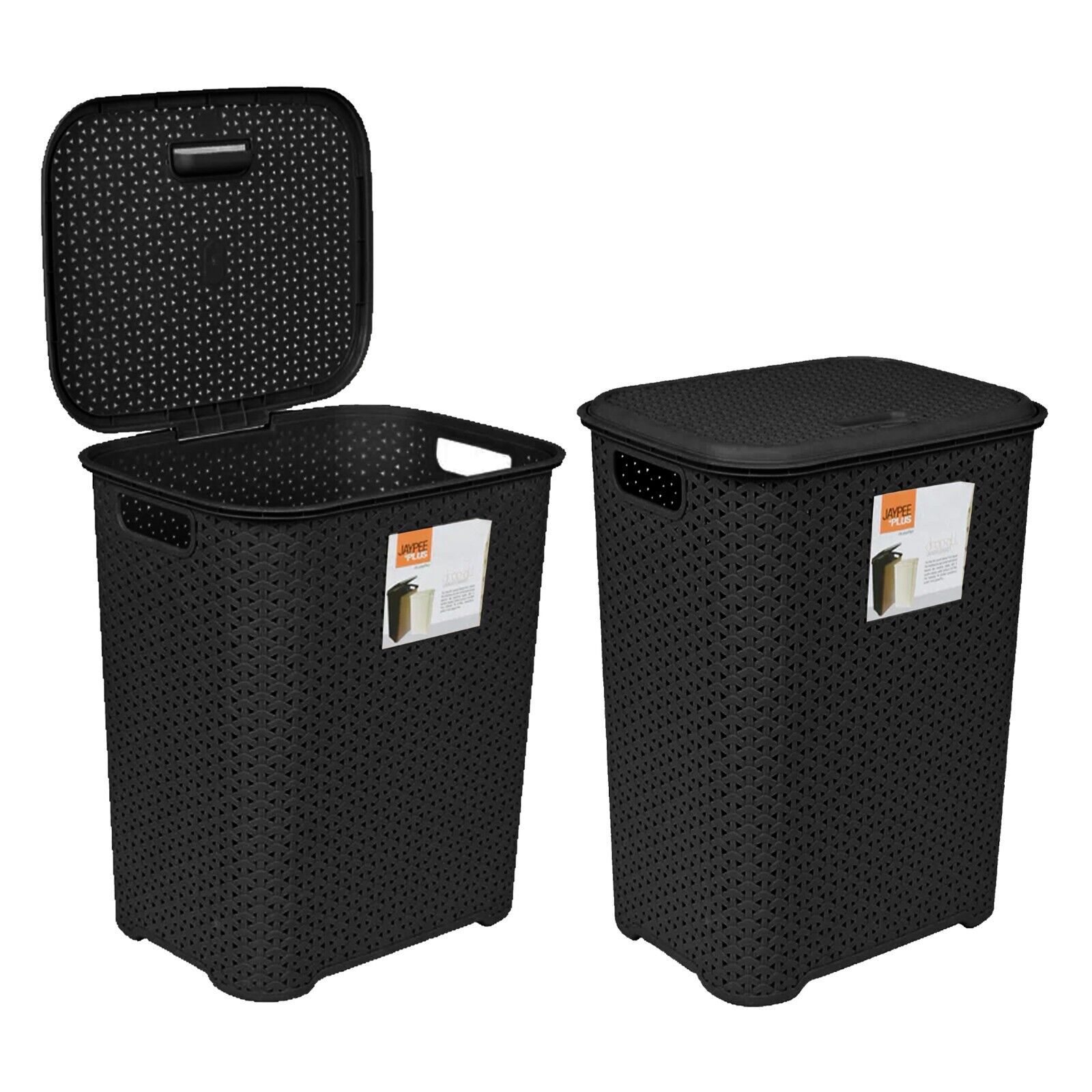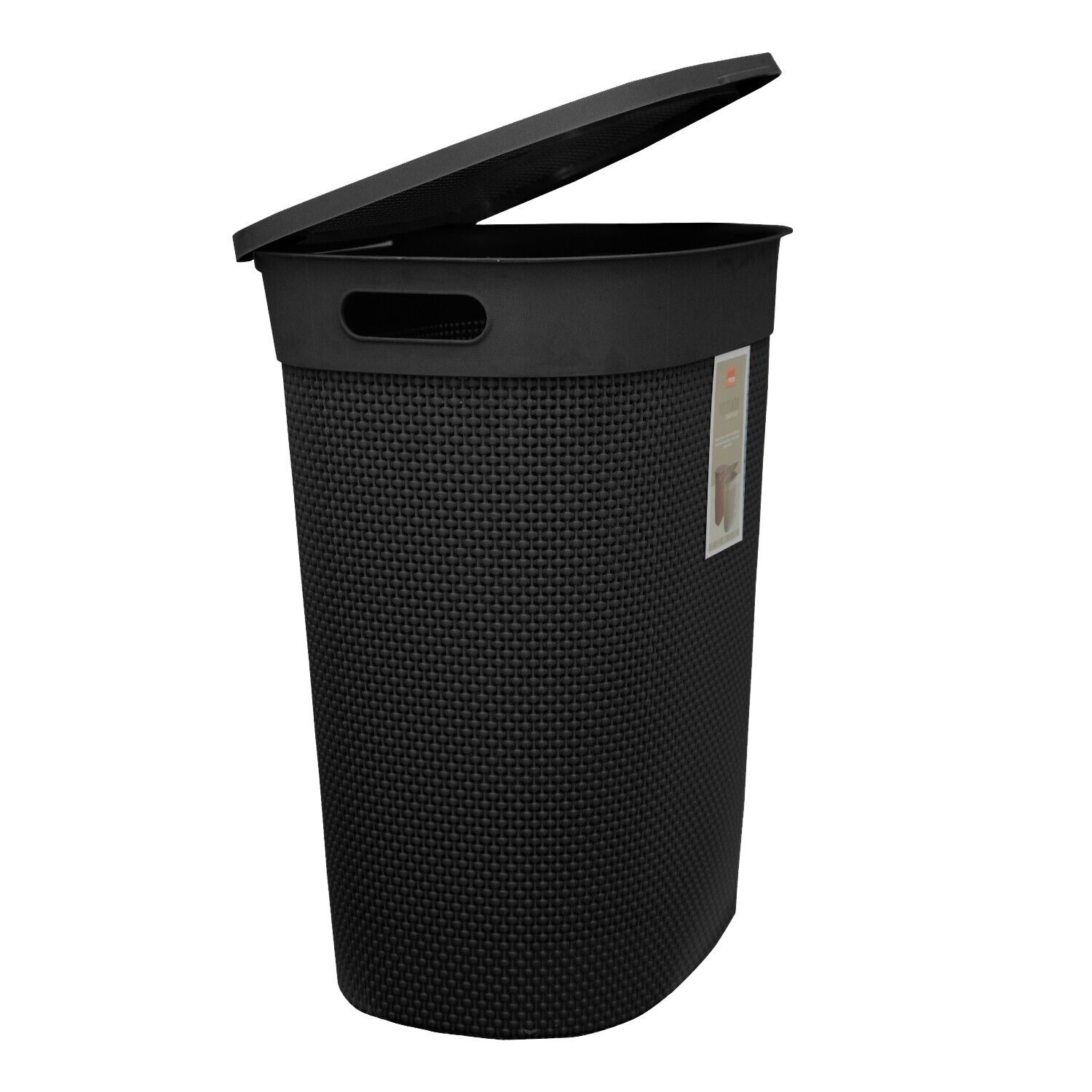 Small Laundry Basket With Lid Black 45 Litres Washing Dirty Clothes Storage Bin