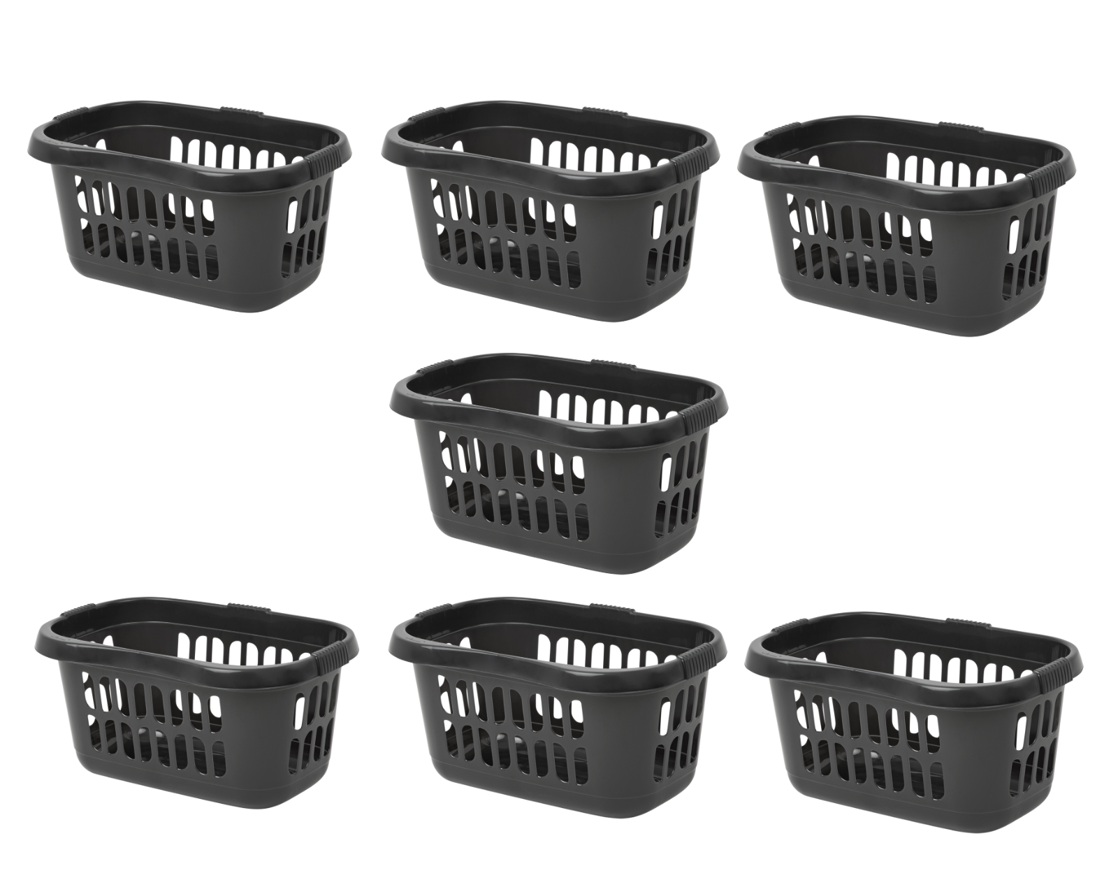 7 x Plastic Laundry Basket Hipster Washing Drying Clothes Linen Storage - Black