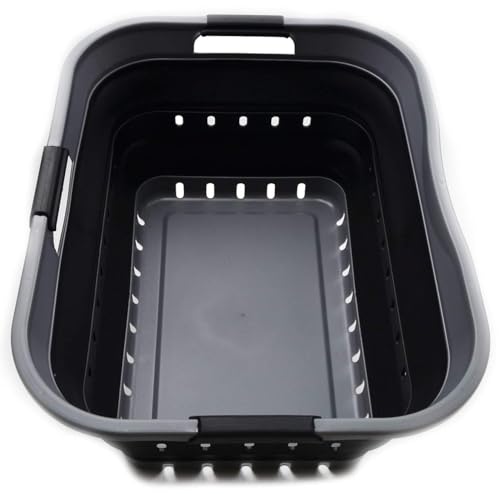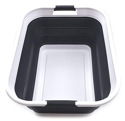 SAMMART 41L Collapsible Plastic Laundry Basket-Foldable Pop Up Storage Container/Organizer-Portable Washing Tub-Space Saving Hamper,Water capacity:32L(Grey/Black)