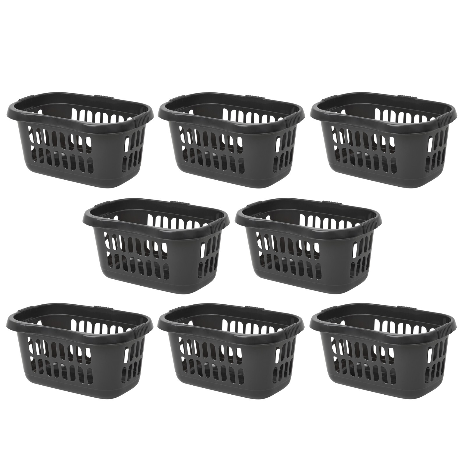 8 x Plastic Laundry Basket Hipster Washing Drying Clothes Linen Storage - Black