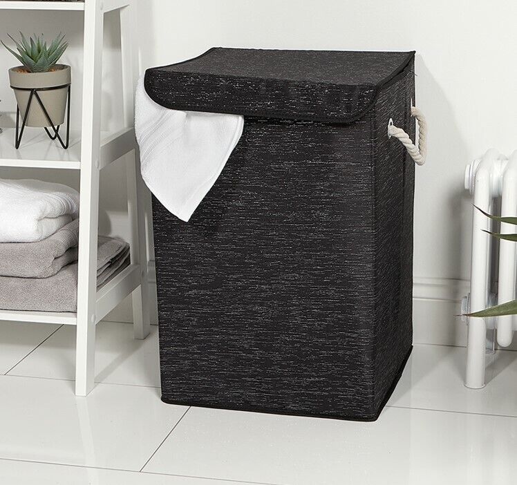 LARGE BLACK LAUNDRY BASKETS WASHING CLOTHES STORAGE FOLDING BASKET BIN WITH LID