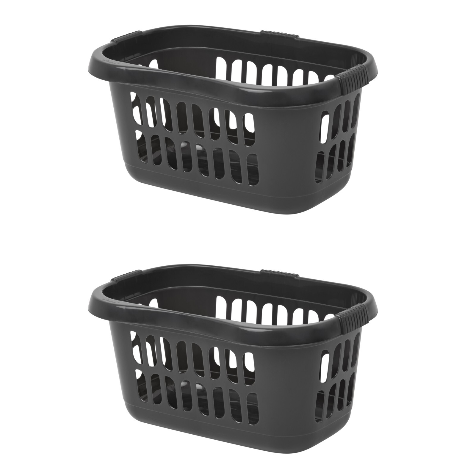 2 x Plastic Laundry Basket Hipster Washing Drying Clothes Linen Storage - Black