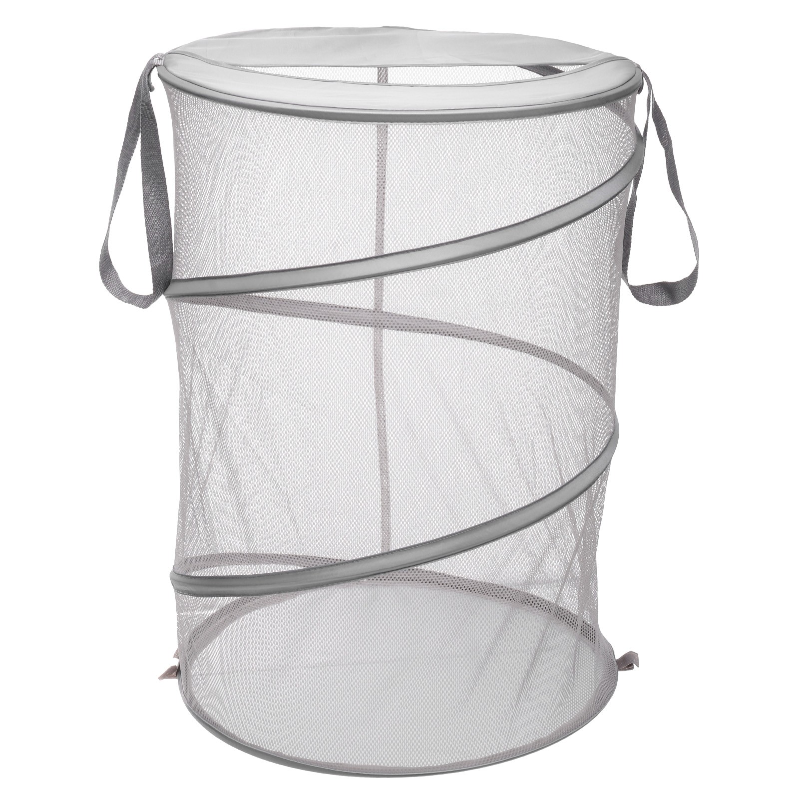 TOSKATOK Single Clothes Washing Laundry Bag Bin Reusable Mesh Zipped Pop Up Collapsible Basket Black