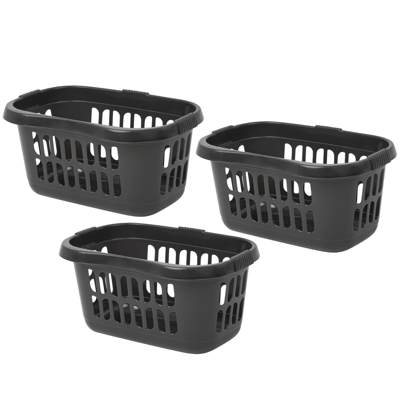 3 x Plastic Laundry Basket Hipster Washing Drying Clothes Linen Storage - Black