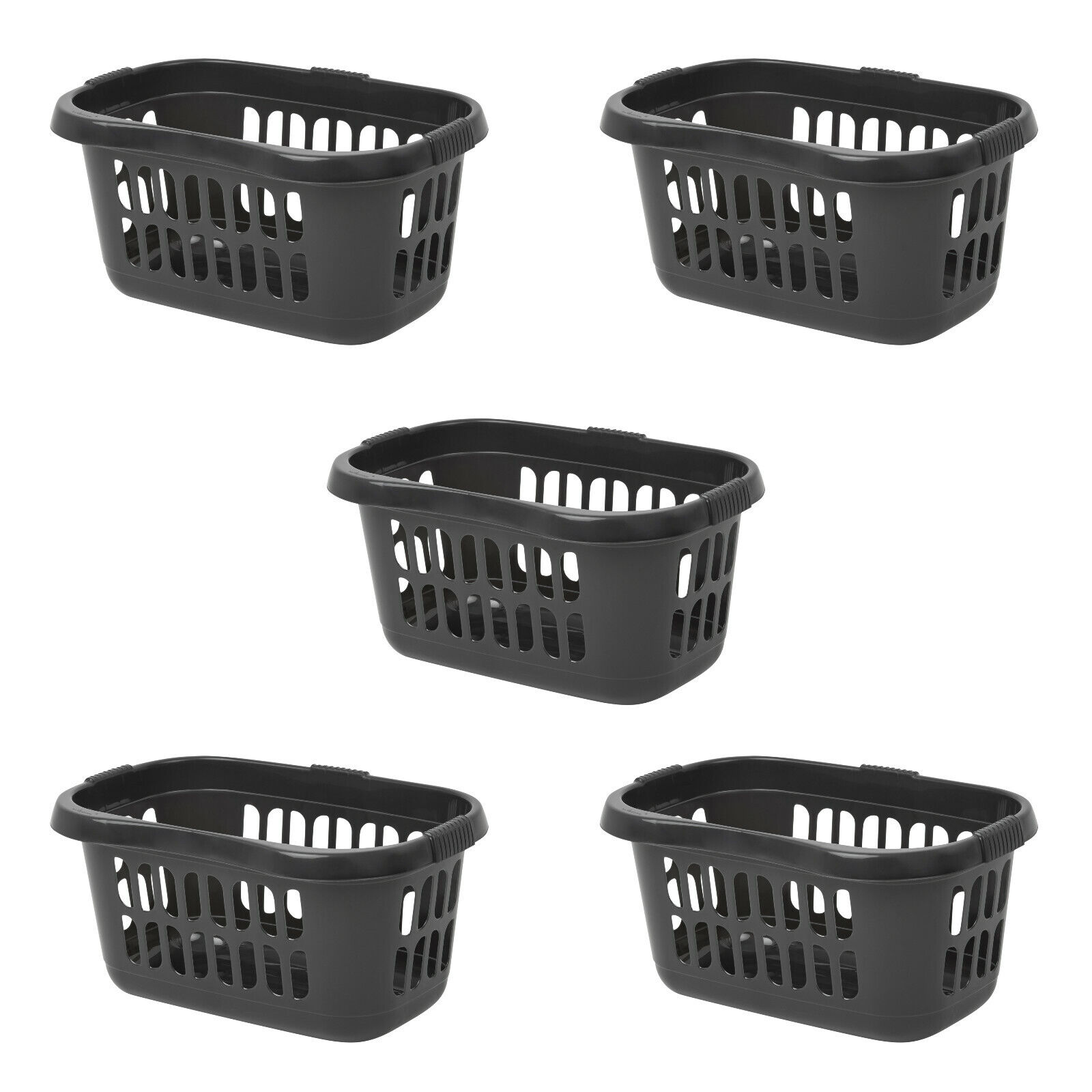 5 x Plastic Laundry Basket Hipster Washing Drying Clothes Linen Storage - Black