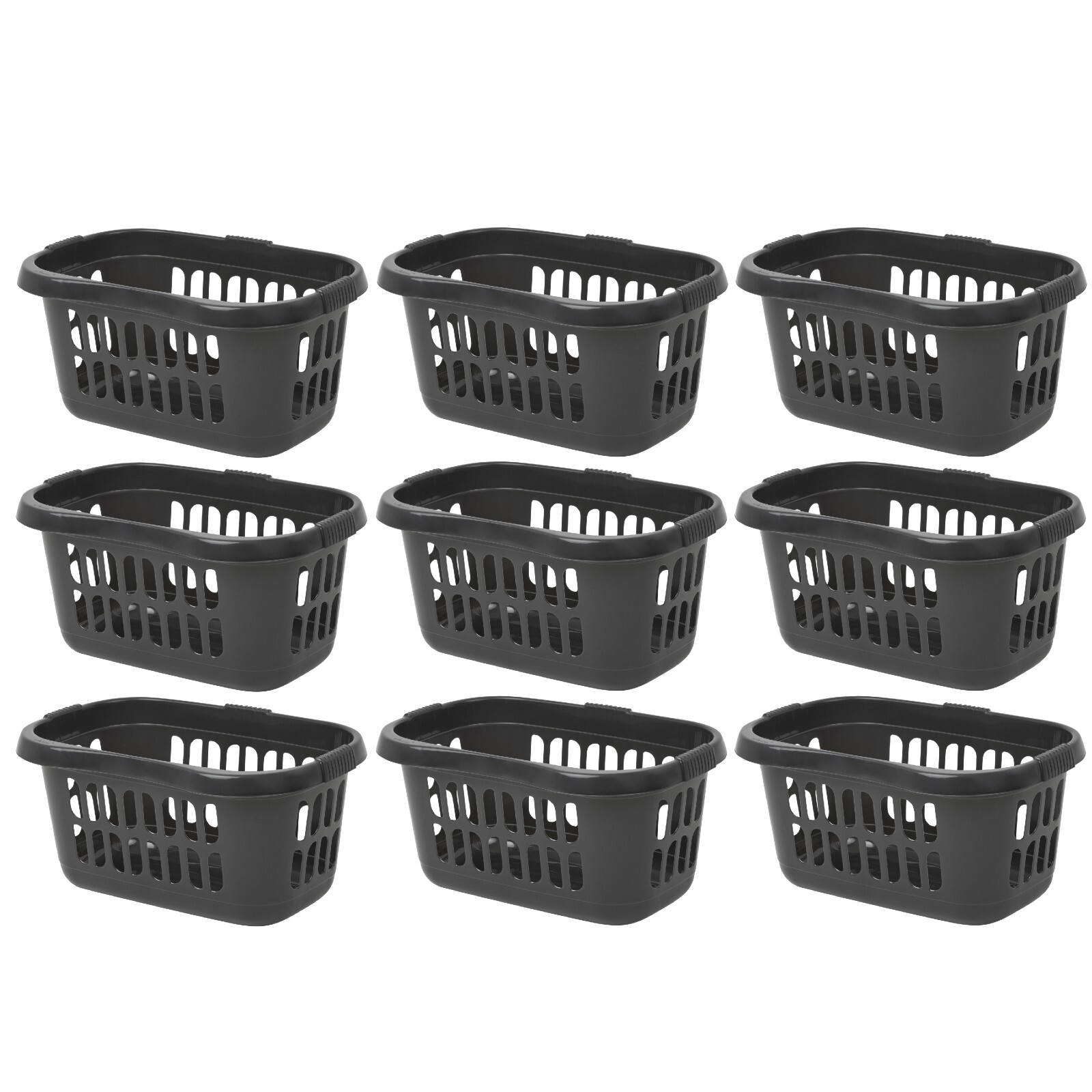 9 x Plastic Laundry Basket Hipster Washing Drying Clothes Linen Storage - Black